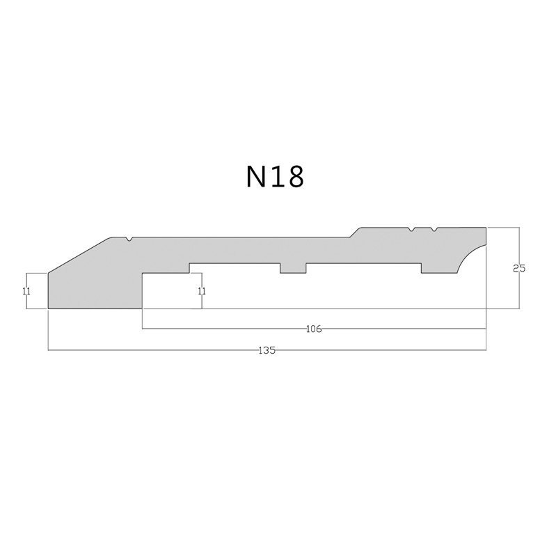 قرنیز پلی استایرن بهینا 13.5 سانتیمتر سری N18 تولید شرکت بهینا میباشد. این پروفیل قرنیز پلی استایرن با عرض 13.5 سانتیمتر و در طول شاخه 3 متر تولید میگردد. قرنیز سری N18 پلیاستایرن بهینا دارای رنگ بندی متنوع میباشد و برای کسانی که به دنبال یک پروفیل قرنیز شیک و با ابزار خاص میباشند پیشنهاد بسیار مناسبی میباشد.